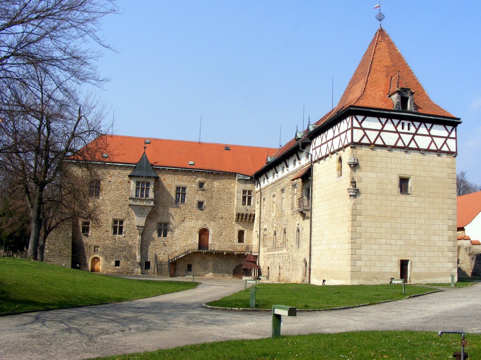 Královská tvrz v gotické podobě byla poškozena výbuchem prachárny, celá dvě křídla musela být zbourána a přestavěna do renesanční podoby. V minulých dvou stoletích byla dále upravenana zámek. Je zde Jandovo muzeum s expozicí nářadí a pomůcek posledního kata a také ceník za úkony. V dílně alchymistů nalezneme křivule, tavicí pec a hmoždíře všech velikostí. K vidění je i jídelna s krásným krbem, honosné arkýře a u stropu zavěšený vycpaný krokodýl. Z nádvoří lze pozorovat zbytky vnějšího opevnění s klíčovými střílnami.